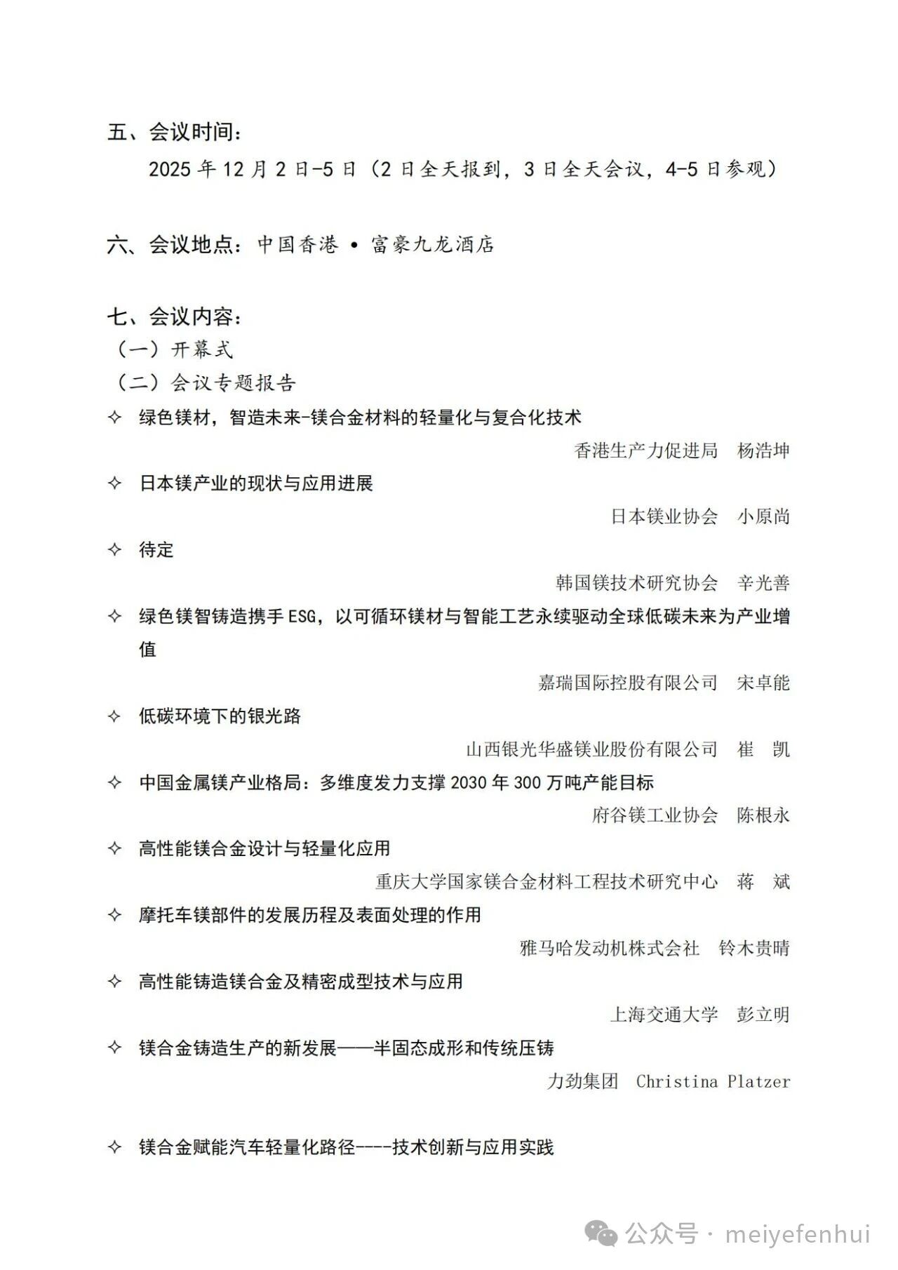 为加速亚太地区镁材料技术创新与产业升级,推动镁资源高效开发、应用场景拓展及跨境合作,中国有色金属工业协会镁业分会与香港铸造业总会、日本镁业协会及韩国镁技术研究协会共同举办“2025年第三届亚太地区镁产业高层论坛”。现将有关事项通知如下:
